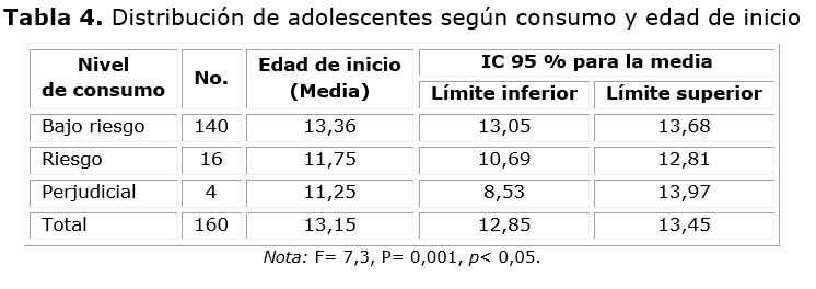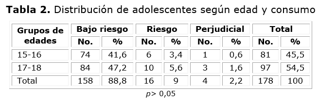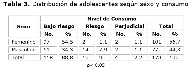 Results: 88.8% of adolescents had a low risk level of consumption, 20.8